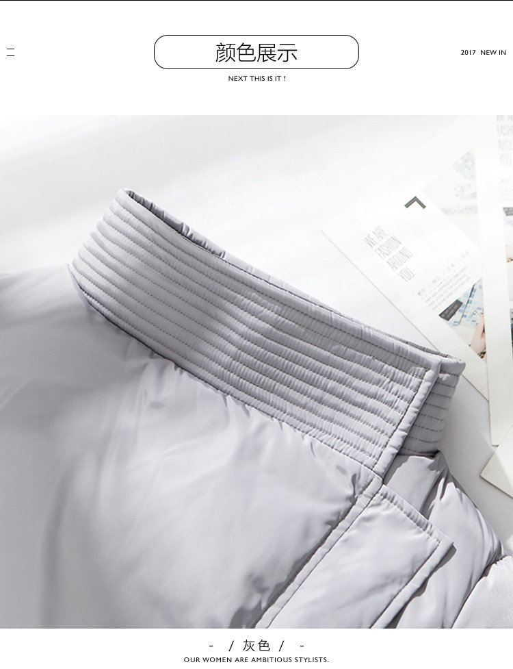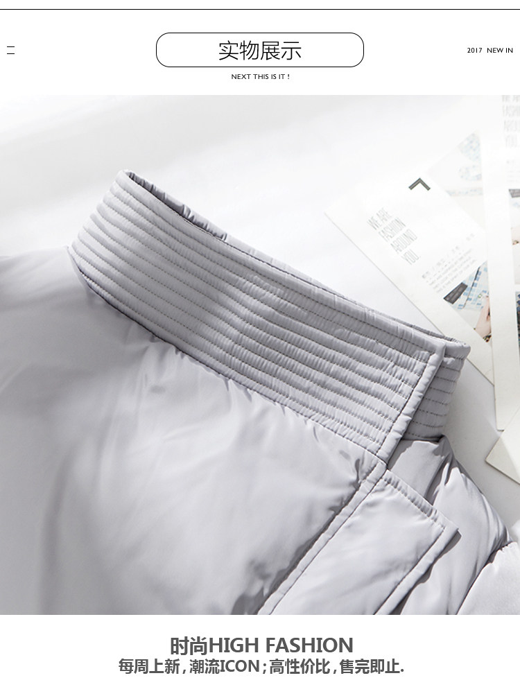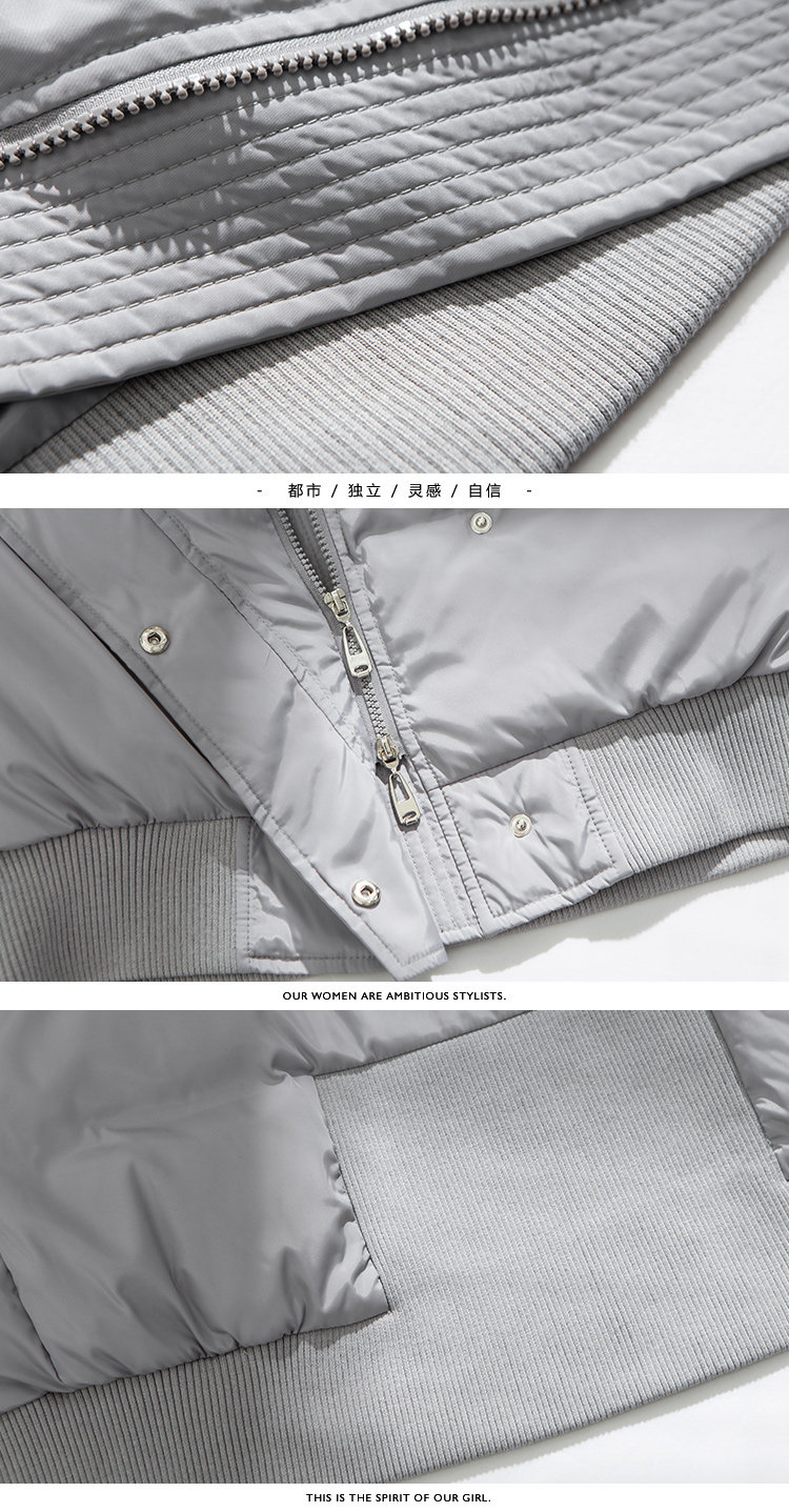 | 主 料:聚酯纤维里 料:聚酯纤维 内胆布:聚酯纤维 填充物:白鸭绒(含绒量90%) 鸭绒克重: (DUCK DOWN WEIGHT) S M L XL 209g 216g 223g 230g颜 色:灰色 |