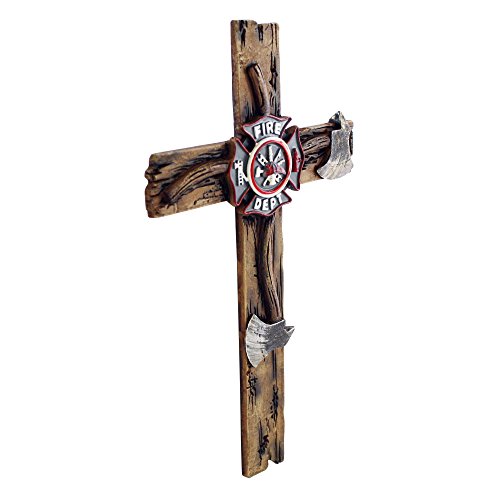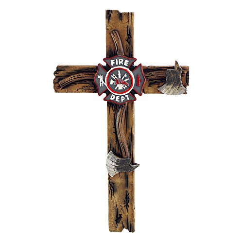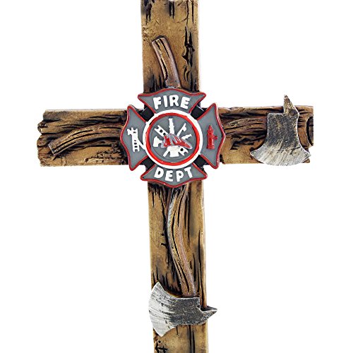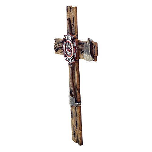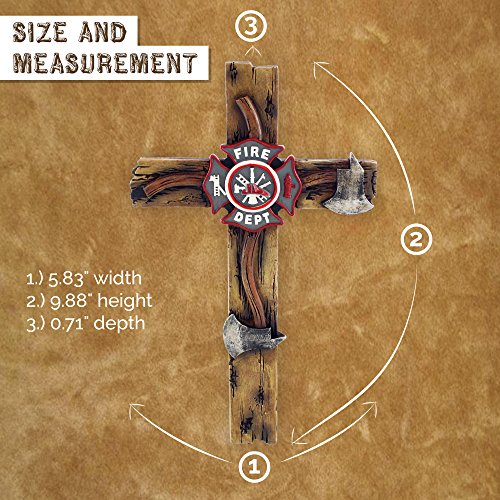 EYE-CATCHING DESIGN: A truly striking decorative wall cross with Fire Department Emblem centerpiece. Eye catching fire shield, beautifully designed and crafted beautiful wood look cross.