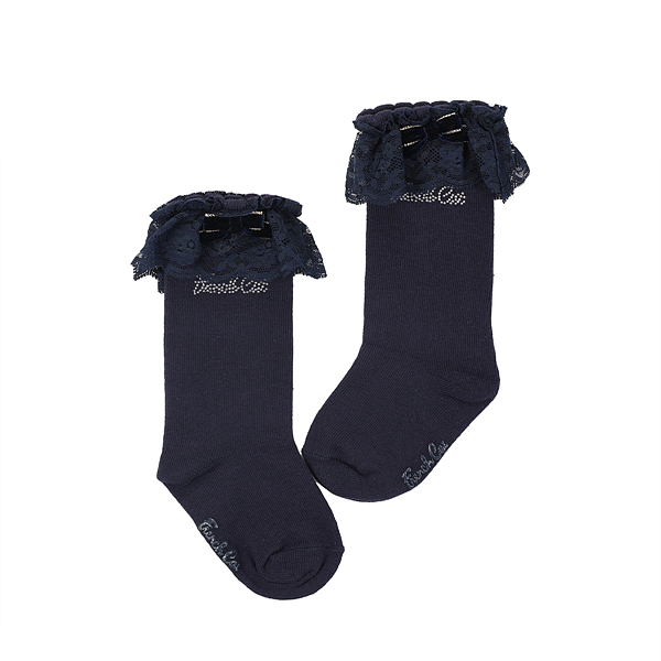 상품설명 네이비 레이스 장양말입니다. 레이스 프릴에 벨벳 리본과 로고핫피스로 포인트를 주었습니다.