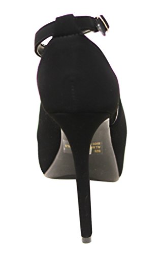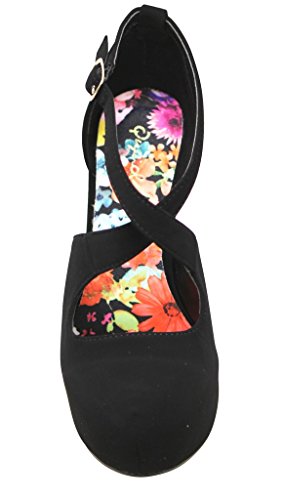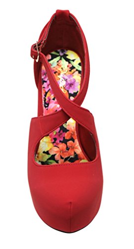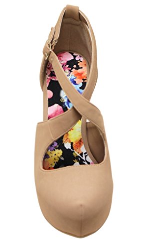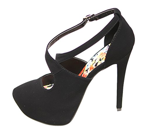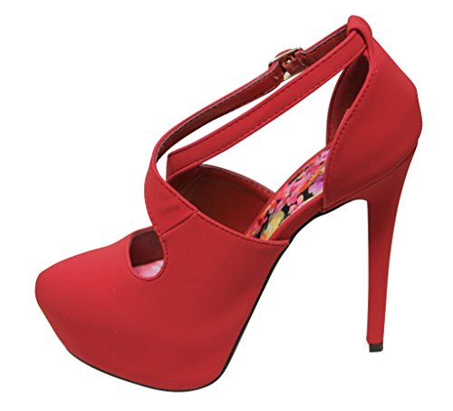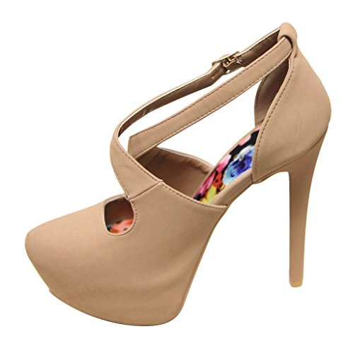 -. Title : Qupid Sassy-07 Women's round toe high heel buckle upper crossing straps Nubuck pumps
