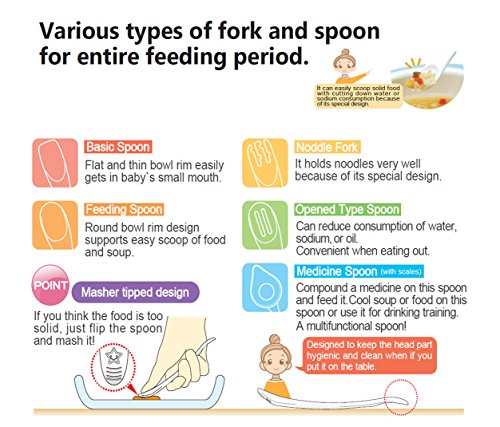 • -Combination of a Fork (Noodle) and 4 Spoons (Basic, Feeding Open Type and Medicine ) with a Case