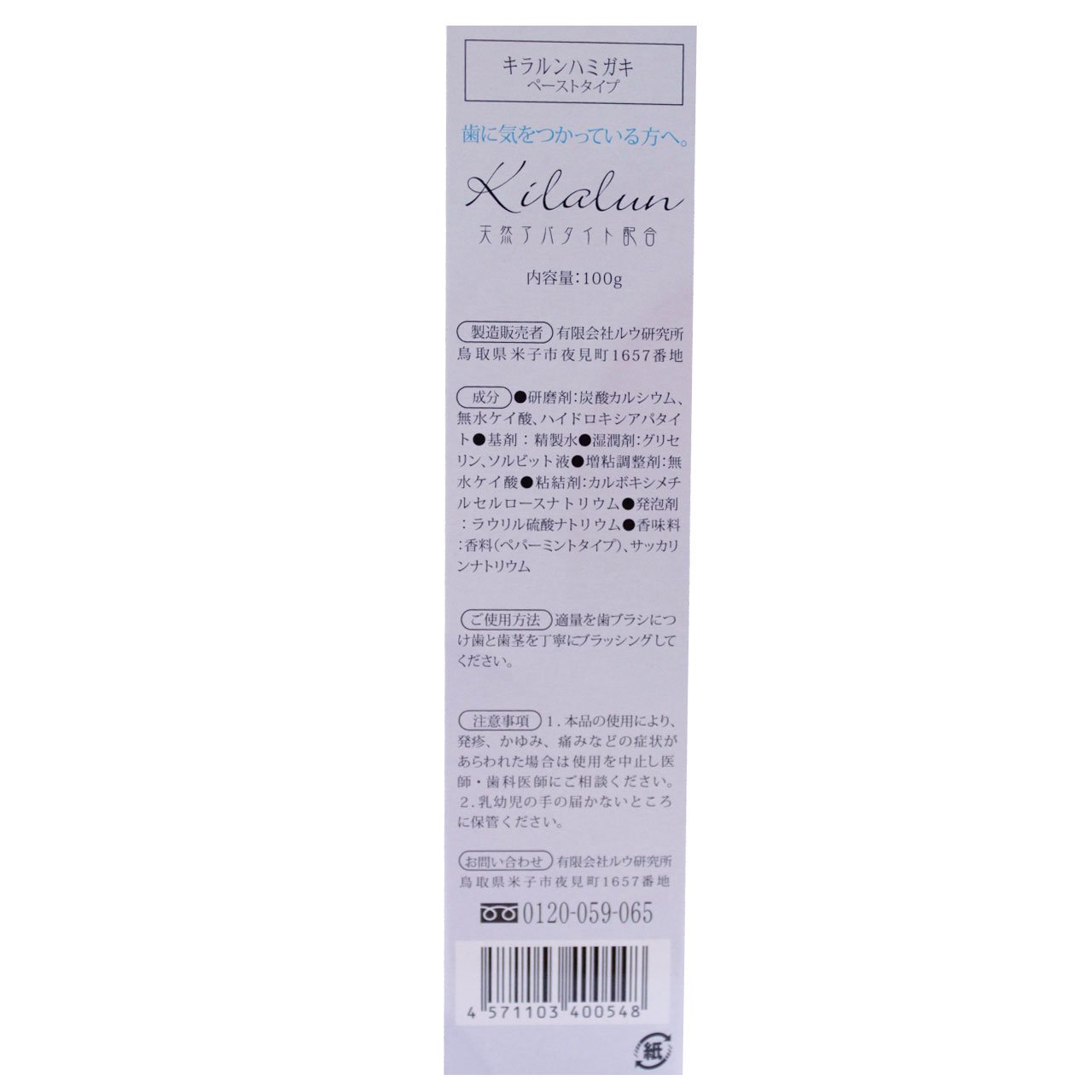 Lou Institute Kirarun toothpaste paste type 100g Whitening