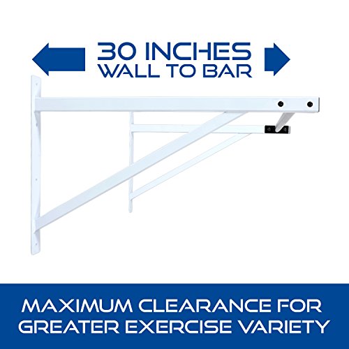 You have strength goals that can only be met with a high performance mounted bar built for serious gains. The Wall Mount XL Pull Up Bar by Ultimate Body Press provides the structure you need for high level training with 30 inches of wall clearance and 48 inches of width at the bar. Installation is easy with 48 inches on-center mounting plates for a universal fit to all 16 or 24 inch wall and ceiling framing. The XL is tough enough for commercial duty yet it looks incredible in your home gym with a white powdercoat finish and contrasting black bar. The Wall Mount XL Pull Up Bar is a powerful take on pull up bar design that inspires frequent workouts for the results you need right now.
