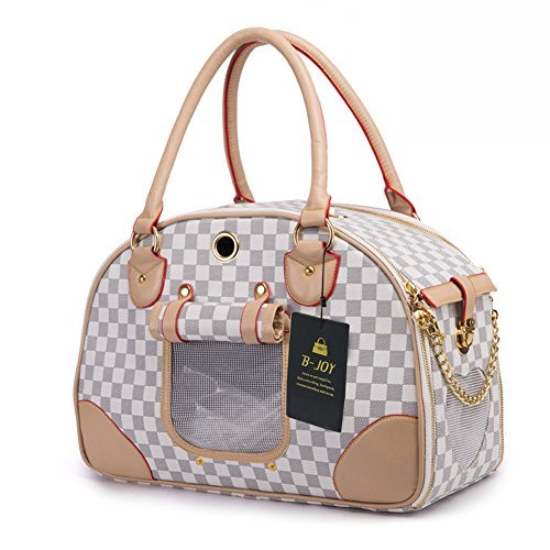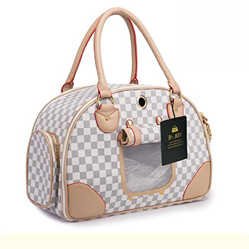 -. Title : B-JOY Fashion Dog Carrier PU Leather Dog Handbag Dog Purse Cat Tote Bag Pet Cat Dog Hiking Tasche (L(42cm*29cm*18cm), White)