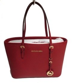 -. Binding : Apparel -. Brand : -. Color : Red -. EAN : 0842616030527 -. Feature : Leather / Double handles with 8" drop / No closure / Interior features middle zip comparment, zip pocket, 4 open pockets and key fob / 13" W x 9" H x 5" D -. MPN : SNA-MK-TRVL-MBA11-RD -. PartNumber : SNA-MK-TRVL-MBA11-RD -. ProductGroup : Apparel -. ProductTypeName : BAG -. Title : Jet Set Saffiano Leather Small Travel Tote Red -. UPC : 842616030527