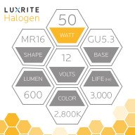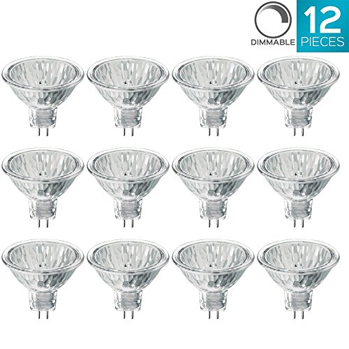 Luxrite LR20250 (12-Pack) 50WMR16/FL EXN 50-Watt Halogen Pin Base Light Bulb, 12V MR16 Halogen Bulb, Glass Cover, Dimmable, 600 Lumens, GU5.3 Bi-Pin Base