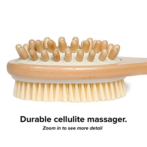 - CELLULITE MASSAGER = 2 BEAUTY TOOLS FOR THE PRICE OF 1. Stable cellulite massager nubs can gently massage fat deposits on the thighs and buttocks, encouraging lymphatic draining and smoother, dimple-free skin. These are just on the other side of the body scrub brush exfoliator, so you always have exactly what you need in just one dry brushing kit.