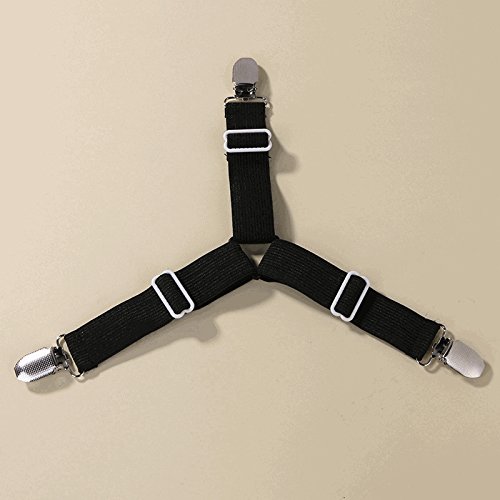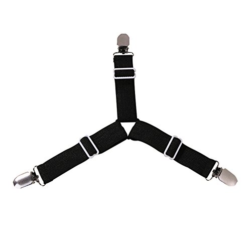 Chen Rui(TM) 1pc Triangle Sheet Band Straps Suspenders Bed Mattress Pad Cover Clips Adjustable Grippers Elastic Straps Fastener Fitted Sheet Corner Holders (Black+White)