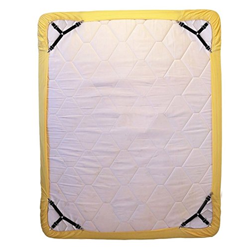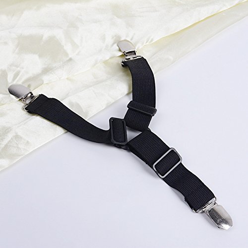 The bed sheet cover grippers are made of sturdy metal clips and heavy duty elastic bungee cords that will grip your bed sheets firmly. Easy to put on and keeps sheets in place and no more fixing sheets, adjustable length allows desired tension.