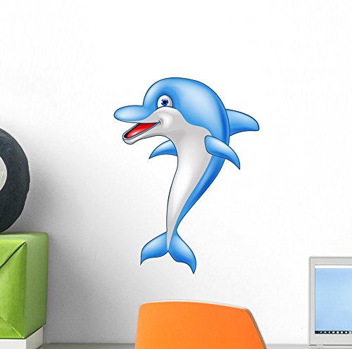 Happy Dolphin Cartoon Wall Decal by Wallmonkeys Peel and Stick Graphic (12 in H x 9 in W) WM134938