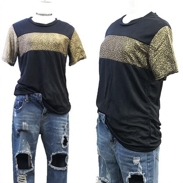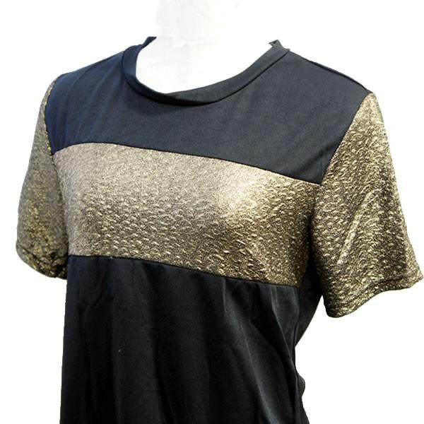 | シャイニー キラキラ Tシャツ トップス 半袖 黒 ゴールド 無地 【トップス レディース 女性 黒 ブラック ロンデルブラック ラメ シャイニー オシャレ トップス ダンス 衣装 ヒップホップ】 | |