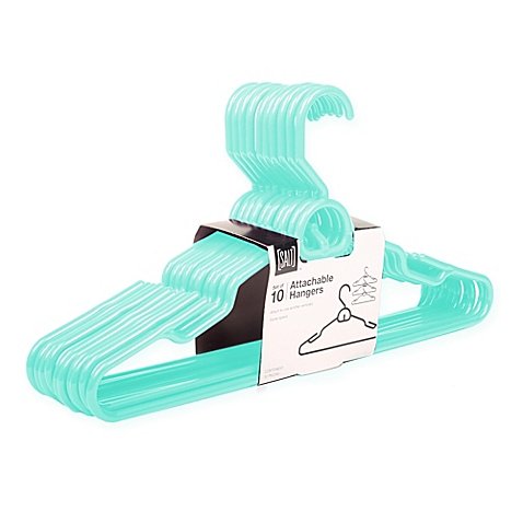 -. Binding : Kitchen -. Brand : Attachable Hangers -. Color : Aqua -. EAN : 0742488724350 -. Feature : Store your clothes in style with Attachable Hangers / Hangers easily connect with each other to help maximize limited closet space / Features notches for hanging clothing with garment straps / Includes 10 hangers 100% plastic / Measures 16.25" L x 0.25" W x 9.5" H -. IsAutographed : 0 -. Label : Attachable Hangers -. Manufacturer : Attachable Hangers -. PackageQuantity : 10 -. ProductGroup : Home -. ProductTypeName : HOME -. Publisher : Attachable Hangers -. Size : 16.25" L x 0.25" W x 9.5" H -. Studio : Attachable Hangers -. Title : Attachable Hangers in Aqua (Set of 10) -. UPC : 742488724350