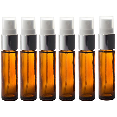 Aromatherapy Glass Spray Bottles, 10ml (1/3oz) Amber Glass - Set of 6 for perfume, essential oils, travel