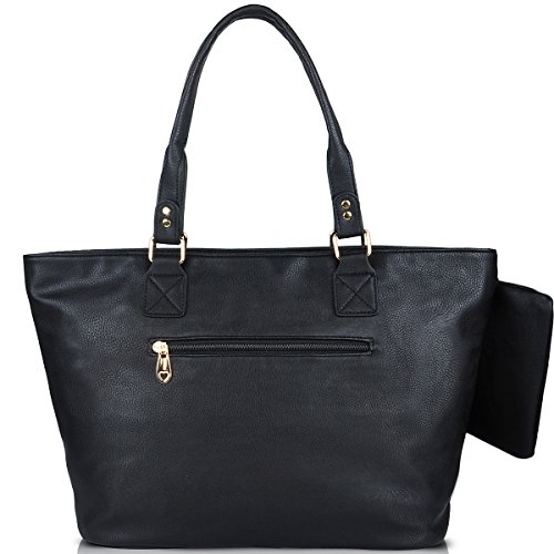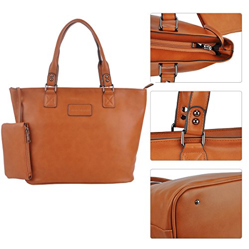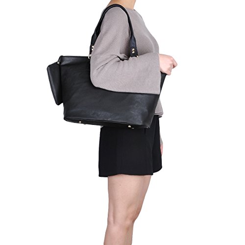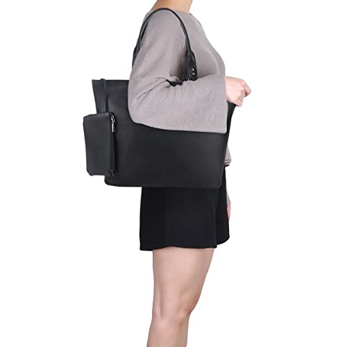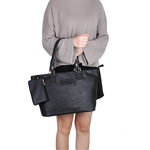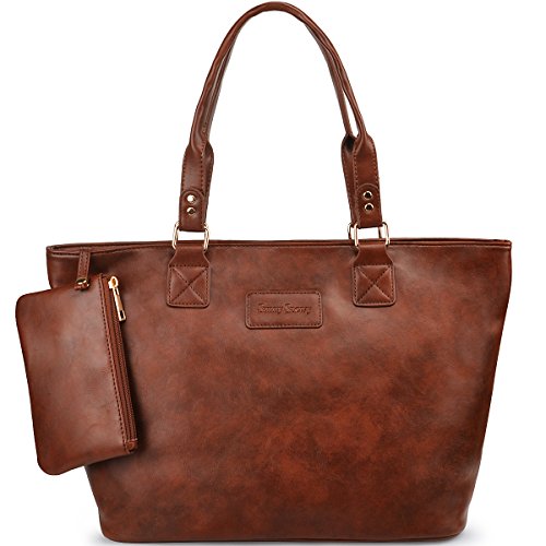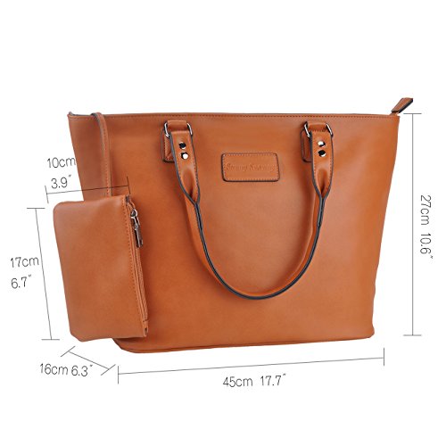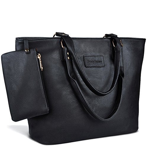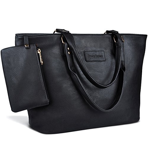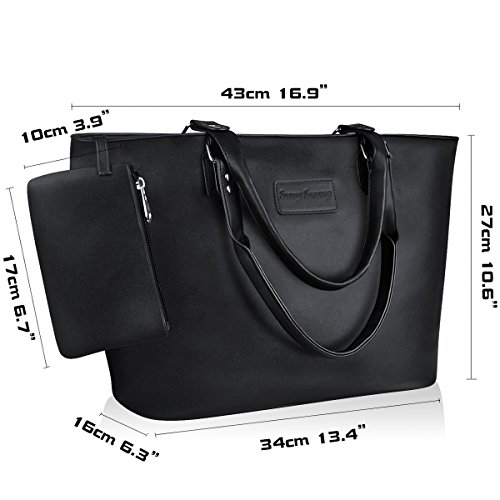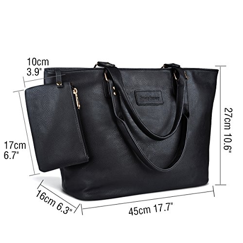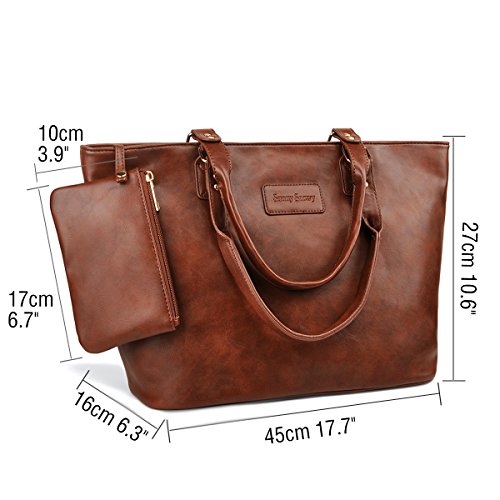Product Description Product Features Sunny Snowy Womens Tote Handbags/Shoulder Bag for Work School/PU Leather Satchel Purse Totes Materials:High Quality Synthetic Leather and Polyester Lining. Dimensions:17.7"L*10.6"W*6.3"H,Small wrist bag:6.7"L*3.9"W Brand:Sunny Snowy Carry method:Handbag/Shoulder Bag/Tote Bag Color:Black,Lightgray,Darkgray Pockets:1XBack Zipper Pocket,3XInterior small pocket,1XHanging small zipper wrist bag. Please Note: 1.If the tote handbag surface is dirty,please clean it with dry soft cloth. 2.Usually the tote bag may come with an unpleasant smell,please put it ventilate place for several days,then it will fade away. 0