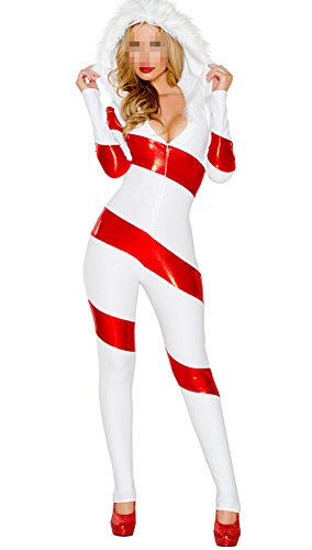 -. Title : Paniclub Women Adult Christmas Costume Mrs. Claus Stripe Jumpsuit Bodysuit Red and White