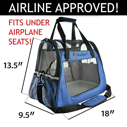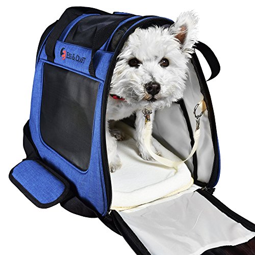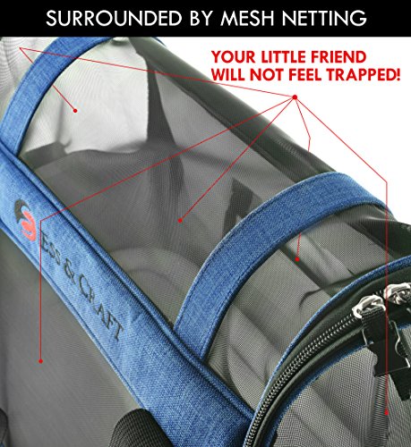 Ess And Craft Pet Carrier 2 Tone Blue Airline Approved | Side Loading Travel Bag With Sturdy Bottom & Fleece Bed | Ventilated Pouch With Top Comfy Handle & Zipper Locks | For Dogs, Cats, & Small Pets