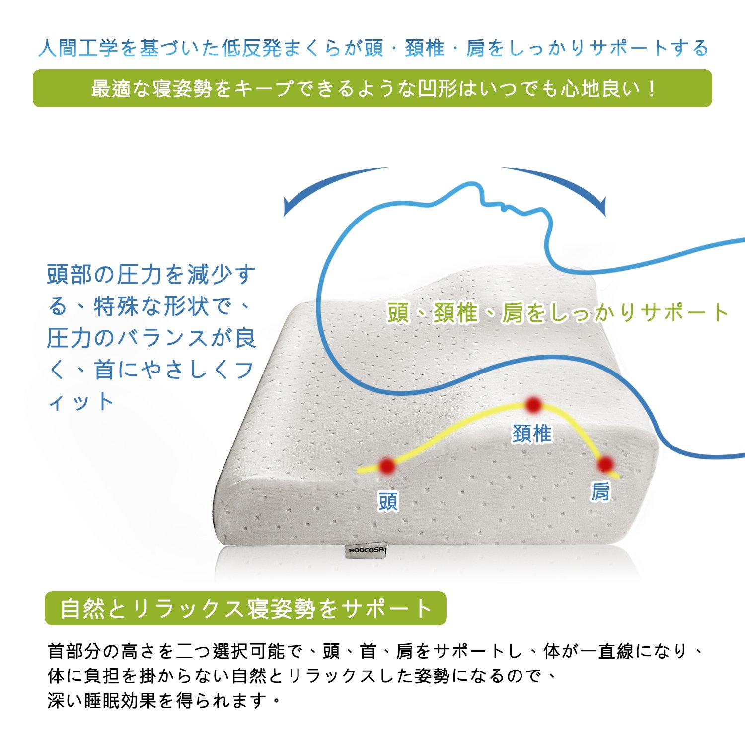 ① The pillow body is an excellent eco material, low repulsion memo