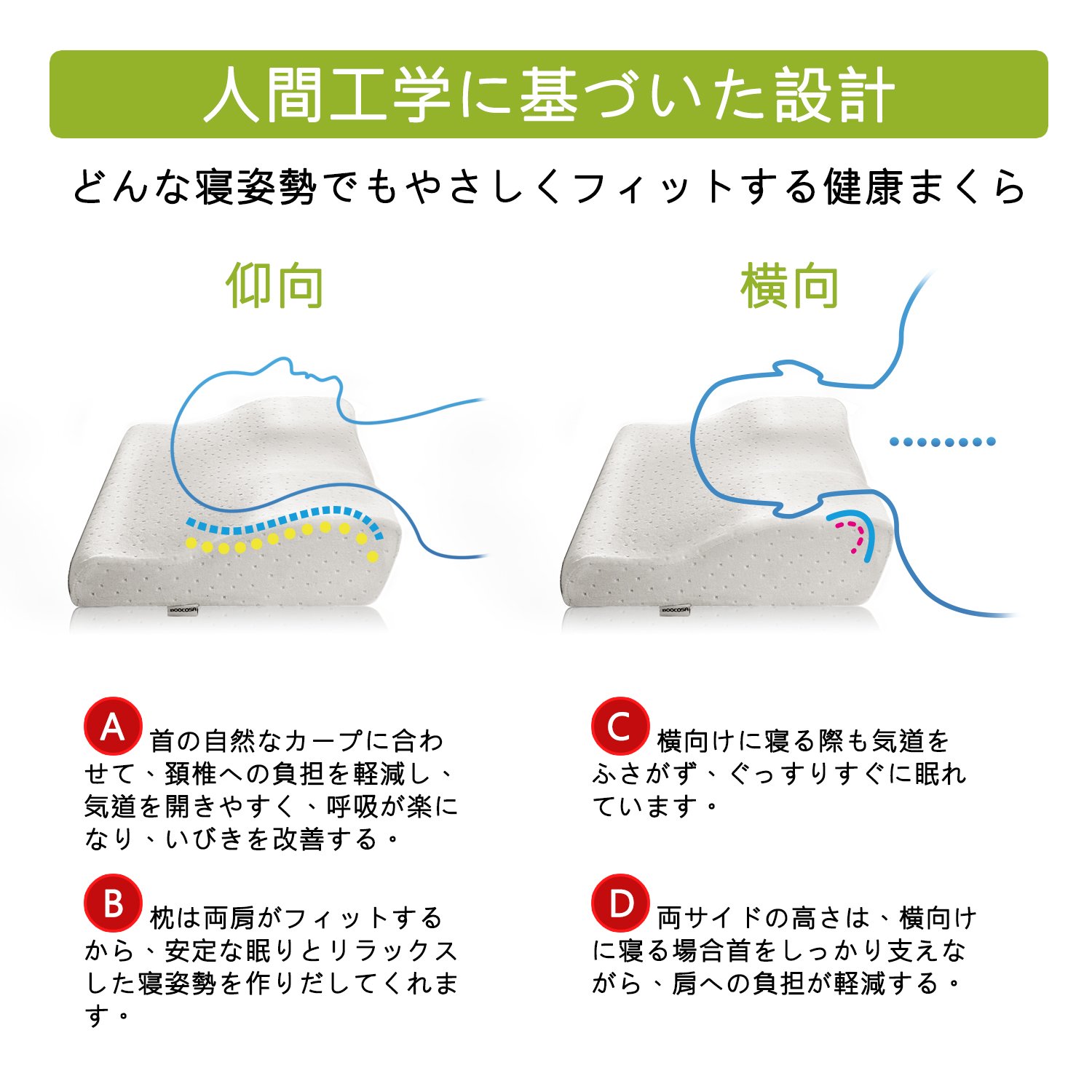 ② Distribute pressure to the back of the head, it is easy to open the airway, breathing becomes easy, and snoring is improved.