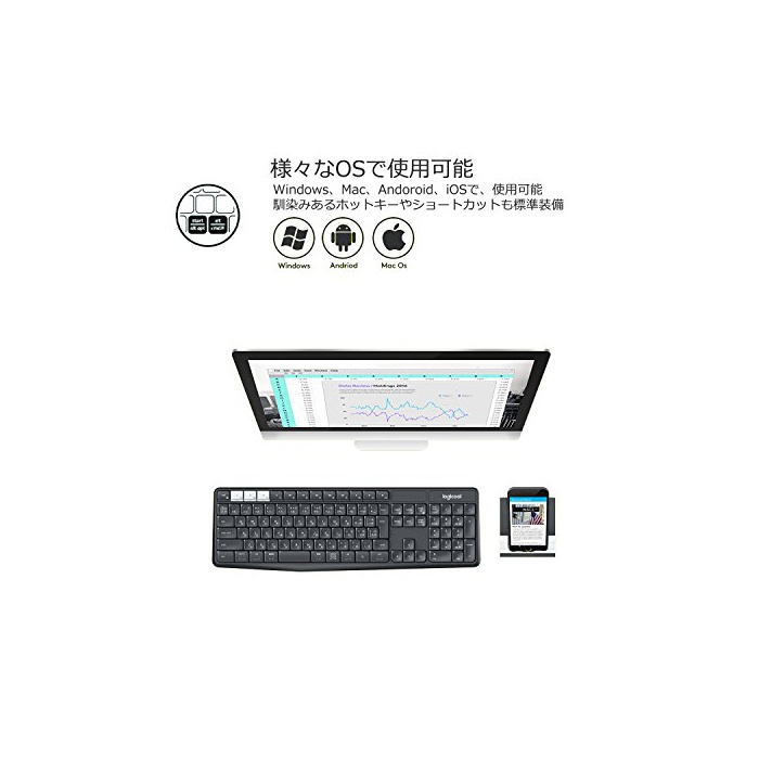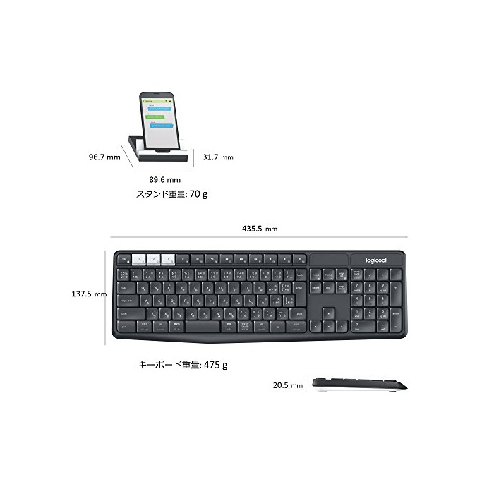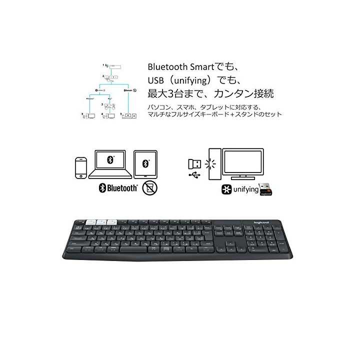 원본상품명: LOGICOOL ロジクル K370s PC/スマホ/タブレット マルチデバイス Bluetooth ワイヤレス キボド (スタンド付)