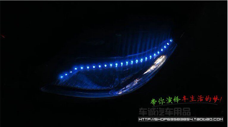 Installation note: before installation using the 12V car battery power test thelamp has no problem to start the installation, the correct way is to remove the lamp strip after careful paste from the package inside the inner edge in the headlights, directly fixed! The power supply directly in parallel with thewidth lamp (lamp power line) can be, no direct (through the fuse) to connect the battery power supply!!!