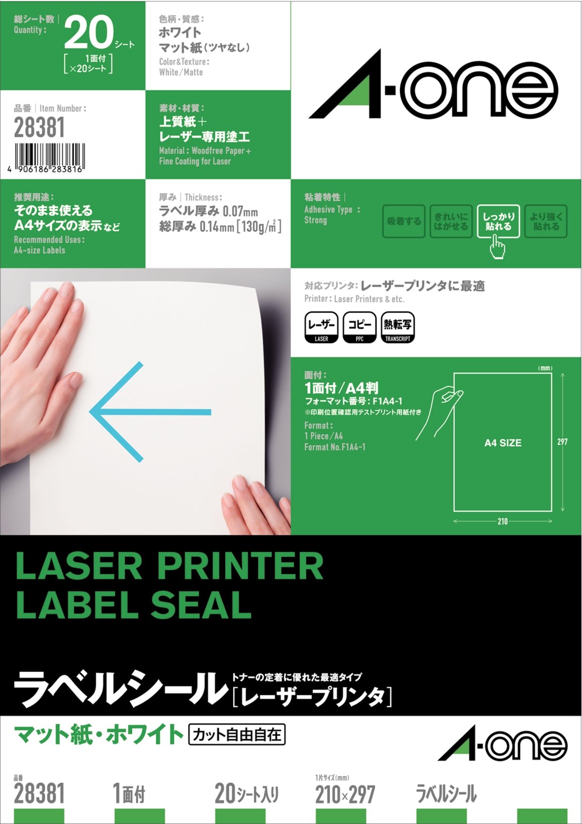 Uncut sheet 20 28381 A4 1 face-One (A-one) label seal [laser printer] Matt White paper (japan import)