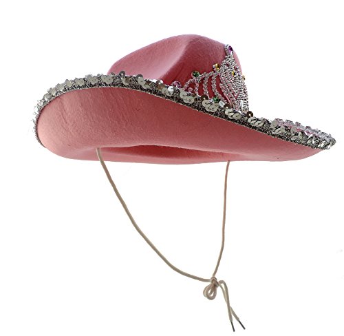 -. Binding : Apparel -. Brand : Jacobson Hat Company -. Color : Pink -. Department : womens -. EAN : 0715007655169 -. Feature : Pink Rodeo Princess Cowgirl Hat / Felted Wool Material Is Beautifully Trimmed with Sparkling Sequins / Stylish Hat For A Girls' Night Out Or Batchelorette Party / Sized To Fit Most Older Children And Teens / Features Large Attached Silver Tone Plastic Tiara -. Label : Jacobson Hat Co. -. Manufacturer : Jacobson Hat Co. -. PackageQuantity : 1 -. ProductGroup : Apparel -. ProductTypeName : ACCESSORY -. Publisher : Jacobson Hat Co. -. Size : One Size -. Studio : Jacobson Hat Co. -. Title : Cowgirl Tiara Felt Rodeo Princess Hat PINK -. UPC : 715007655169