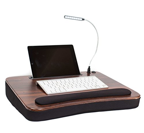 -. Binding : Office Product -. Brand : Sofia + Sam -. Color : Black -. EAN : 0713651437445 -. Feature : Fits 18 inch laptops with room to spare. Fits 20 inch laptops. Fits Tablets 9.6 inches or smaller / Memory Foam cushion providing a comfortable workstation that goes where you go. Provides a sturdy surface for crafts, writing, reading, or working in bed / Keeps your lap cool and comfortable. Built in handle for portability. / Includes detachable USB light that can plug into the Lap Desk or into your computer's USB port / Dimensions: 22" wide x 14.5" deep x 2.55" high. Weight: 4.75 pounds -. Label : Sofia & Sam -. Manufacturer : Sofia & Sam -. MPN : 5023 -. PackageQuantity : 1 -. PartNumber : 5023 -. ProductGroup : Office Product -. ProductTypeName : OFFICE_PRODUCTS -. Publisher : Sofia & Sam -. Studio : Sofia & Sam -. Title : Sofia+Sam Memory Foam Lap Desk with USB Light and Tablet Slot (Black w/Wood Top) -. UPC : 713651437445