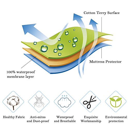 -. Title : Ultra Waterproof Mattress Protector 72"x84"-Hypoallergenic-Dust Mite Protection-California King(Fits Up to 18" Deep)