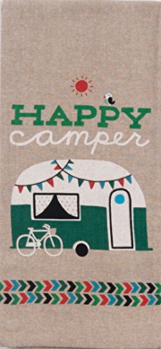 - Camping themed printed chambray tea towel