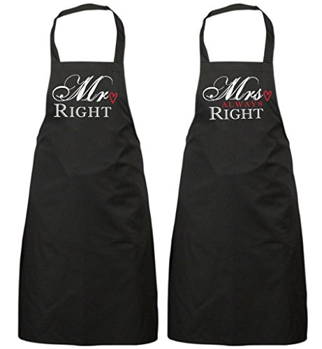 Couples Mr Right Mrs Always Right Black Apron Set Novelty Gift Wedding Anniversary Husband Wife House Warming Kitchen Present