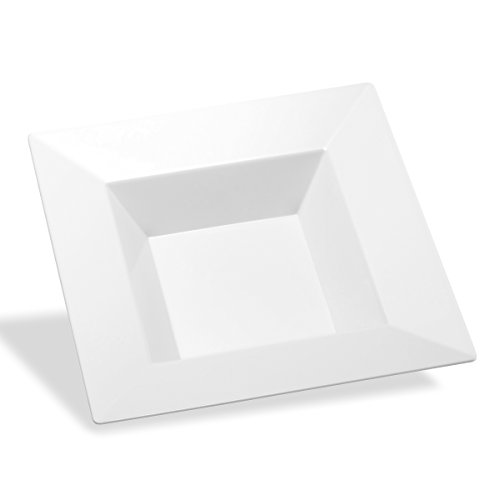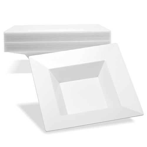 - Square soup bowls 14-oz white plastic plates are perfect for soups, salads, pasta, runny side dishes, yogurt parfaits, cereal etc.