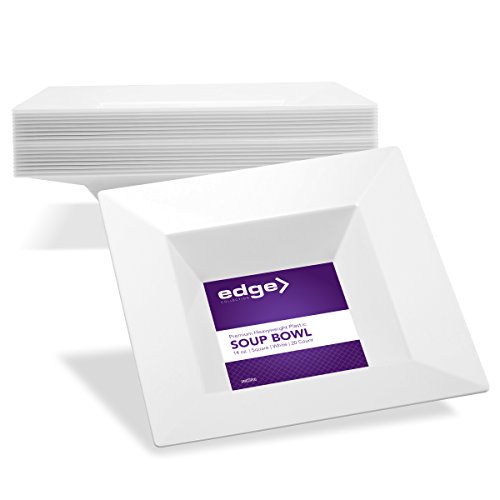 EDGE PLASTIC PARTY DISPOSABLE SOUP BOWLS | 14 OZ, 40 Ct | White Hard Square Wedding Bowls | Elegant & Fancy Heavy Duty Hard Party Supplies Plates for all Holidays & Occasions