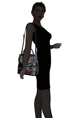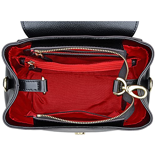 Buckle &zipper closure,fabric lining;Exterior features gold-tone hardware;