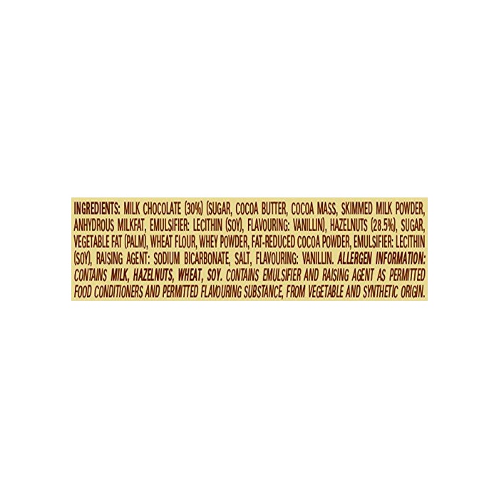 원재료:밀크 쵸코렛(설탕,코코아 버터,카카오 마스,빈틈《무미루쿠파우다》,무수 유기름,유화 제(대두 유래)고, 향료)고, 《헤제루낫츠》,설탕,식물성 기름지,소맥분,《호에이파우다》(유제품)고, 저 지방 코코아,유화 제(대두 유래)고, 빈틈《무미루쿠파우다》,팽창 제,소금,향료