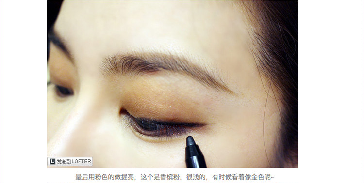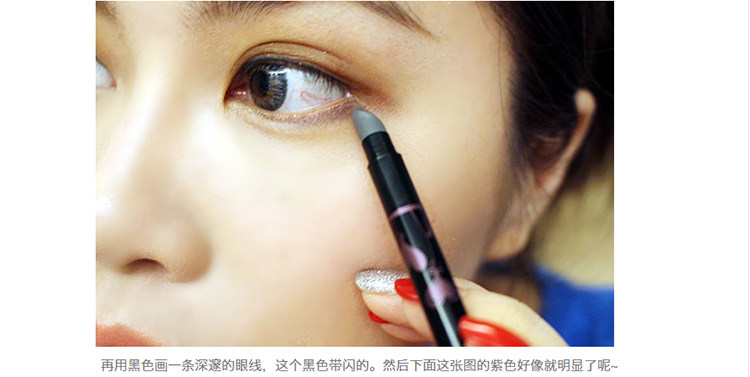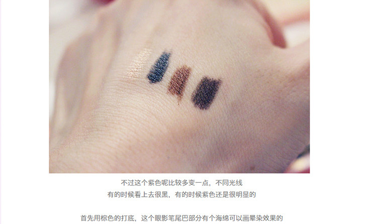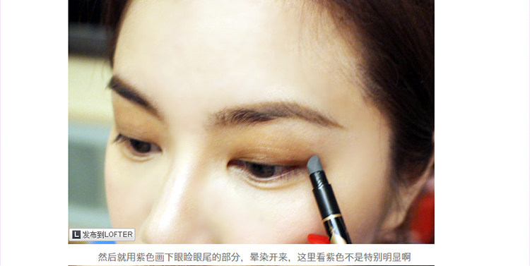 ②画眼影:请在画好30秒以内用另一头推棒推开,轻松不晕染。