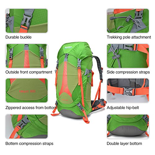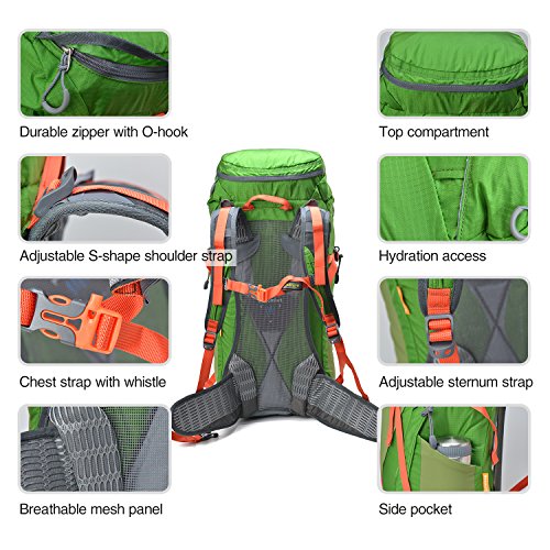 -. Title : REDCAMP Hiking Backpack Waterproof,Daypack Backpack with Rain Cover for Hiking Camping Travel,45L