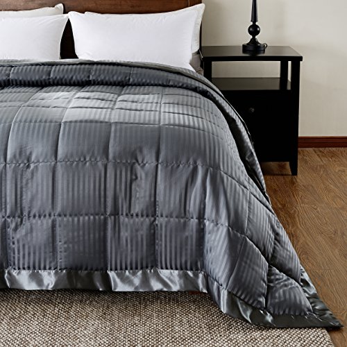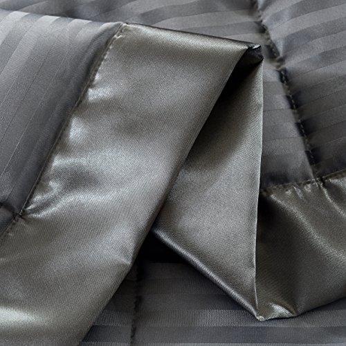 Downluxe Reversible Microfiber Down Alternative Blanket with Satin Trim,King,Grey