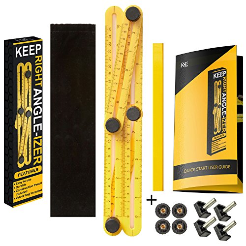 ANGLE-IZER TEMPLATE TOOL by KEEP EVOLVING - Multi-Angle Framing Square Ruler With Angle Finder Design Including, User Manual , Carpenter Pencil , Carrying Pouch, For Contractors and Laminate Flooring.
