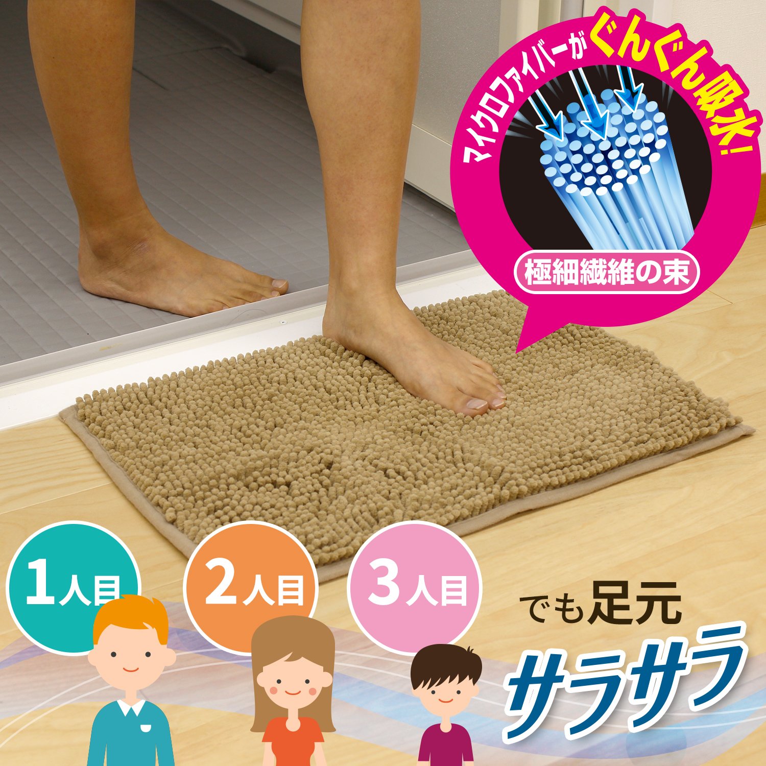 Lek silky instant water absorption bath mat (S ・ 50 × 33cm) Brown