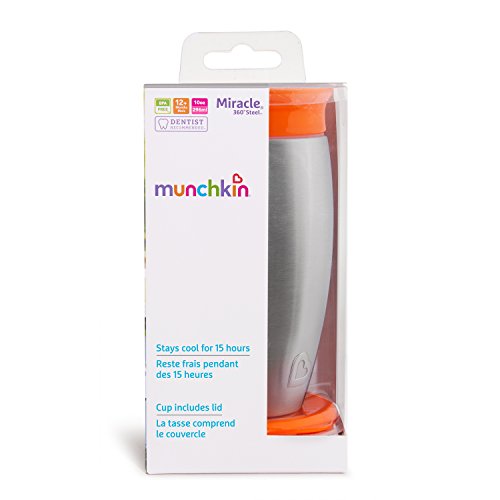 Munchkin Miracle Stainless Steel 360 Sippy Cup, Orange, 10 Ounce