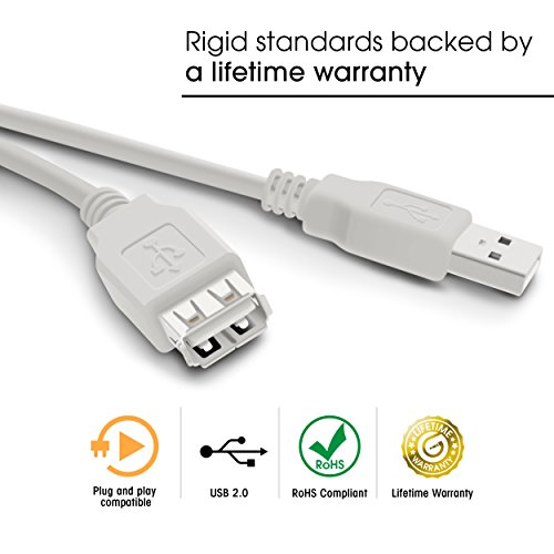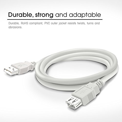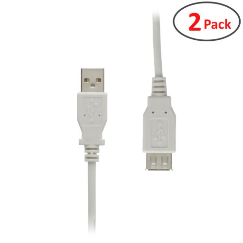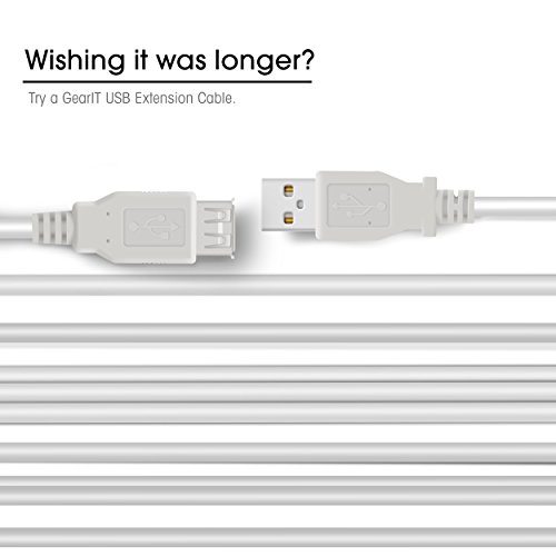 USB 2.0 Extension Cable, A-Male to A-Female USB 2.0 Cable, GearIT (6 Feet 1.8 Meters) (2 Pack) Printers, Cameras, Mice, Keyboards - White