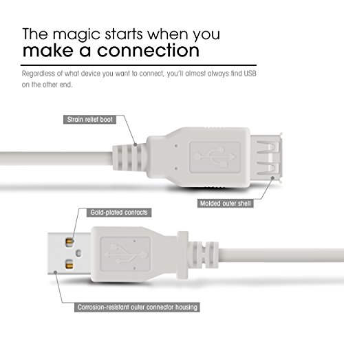 Standard USB A Male connector on one end and an A Female connector on the other and is particularly use for extending the reach of a USB cable. Extension cable for printer, scanner, mouse, keyboard, external hardrive and etc.