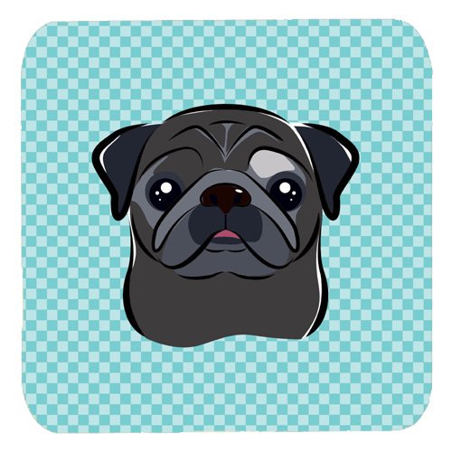Caroline's Treasures BB1201FC Checkerboard Blue Black Pug Foam Coaster (Set of 4), 3.5" H x 3.5" W, Multicolor
