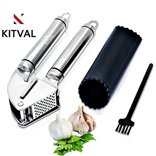 KITVAL Presents You With The Extra Strong Garlic Press You no longer have to crush garlic cloves with a sharp knife, your hands or any other random item from your kitchen. With the handheld garlic press tool, you can now mince garlic cloves fast, without much effort and without making a mess. Simply place a clove in the small chamber and press the two sturdy handles. The garlic clove is now perfectly minced! It Will Feel As If It Was Specially Designed To Fit Your Palm Perfectly The KITVAL stainless steel garlic mincer has a beautiful, high end design and an elegant polished finish. The handle of the garlic crusher has the perfect width and it provides you with the most secure and comfortable grip. The garlic mincer is 19 cm long and it only weighs 270 gr. It is, therefore, very lightweight and easy to control and handle. A Complete Set Of Professional Kitchen Utensils With one simple click on the "Add to Cart" button, you will get 3 pieces of professional cooking tools. So, apart from the garlic press, you will also get a silicone peeler that will remove the garlic skin with one easy move. The other piece of the bundle is a cleaning brush that will help you clean the 59 rings of the garlic mincer and have zero waste. Your Satisfaction Is Guaranteed We are 100% confident about the garlic press set, and we want you to have zero doubts, too, when making this purchase. That's why KITVAL offers you a money back guarantee in the unlikely event that you're not satisfied with the garlic mincer. All you have to do is contact and return the garlic crusher to us, and we will give you the 100% of your money back. Don't Hold Back! Click The "Add to Cart" Button NOW! 0 |