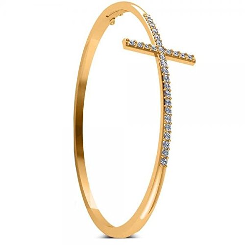 -. Title : Diamond Religious Cross Bangle Bracelet in 14k Yellow Gold (0.87ct)