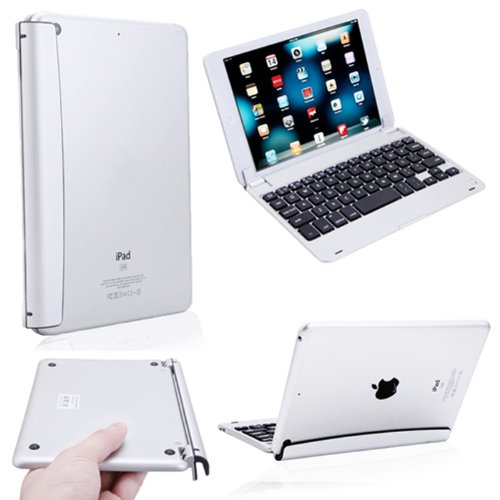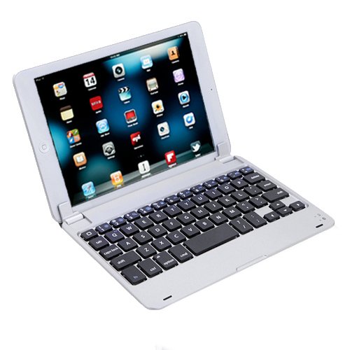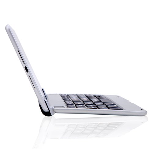 HDE Sleek Aluminum Bluetooth 3.0 Rechargeable Keyboard Shell Case and Stand with Smart Cover Auto Sleep/Wake Feature for iPad Mini
