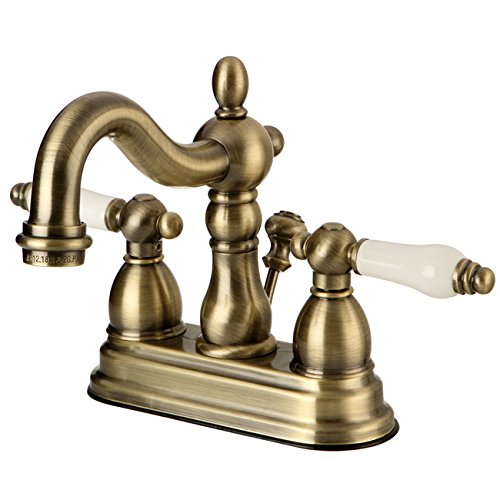 Kingston Brass KB1603PL Heritage 4-Inch Centerset Lavatory Faucet with Porcelain Lever Handle, Vintage Brass