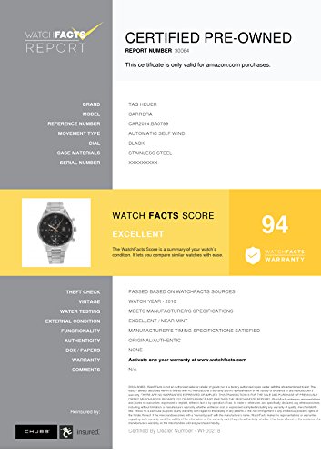 -. Feature : Tag Heuer Carrera CAR2014.BA0799 with 7.75 inches band, stainless-steel bezel and black dial / Authenticated by WatchFacts. Grade Rating: 94 / Condition: Excellent / No papers offered with this watch / Automatic-self-wind movement / Watch year: 2010