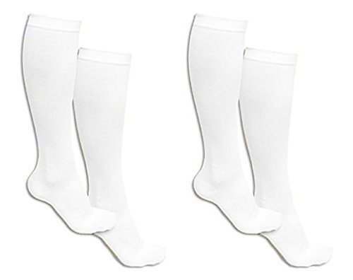 Pack of 2 White Pairs Which Is 4 Knee to Upper Calf High Compression Socks for Women with Shoe Sizes From 6-10 USA Compression Stockings