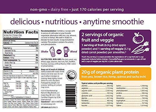 -. Binding : Health and Beauty -. Brand : Alive -. Label : Enzymatic Therapy, Inc. -. Manufacturer : Enzymatic Therapy, Inc. -. ProductGroup : Health and Beauty -. ProductTypeName : HEALTH_PERSONAL_CARE -. Publisher : Enzymatic Therapy, Inc. -. Studio : Enzymatic Therapy, Inc. -. Title : Alive! USDA Organic Plant Protein Smoothie